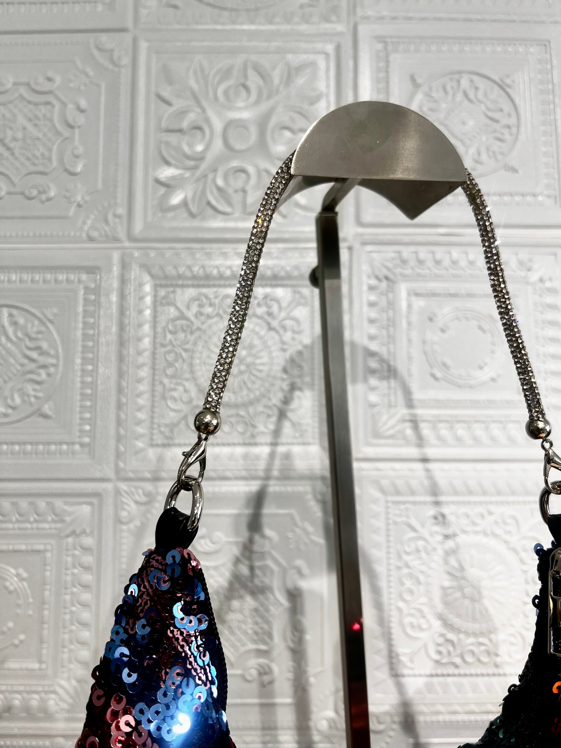 Borsa in paillettes multicolor e manico removibile in swarowsky