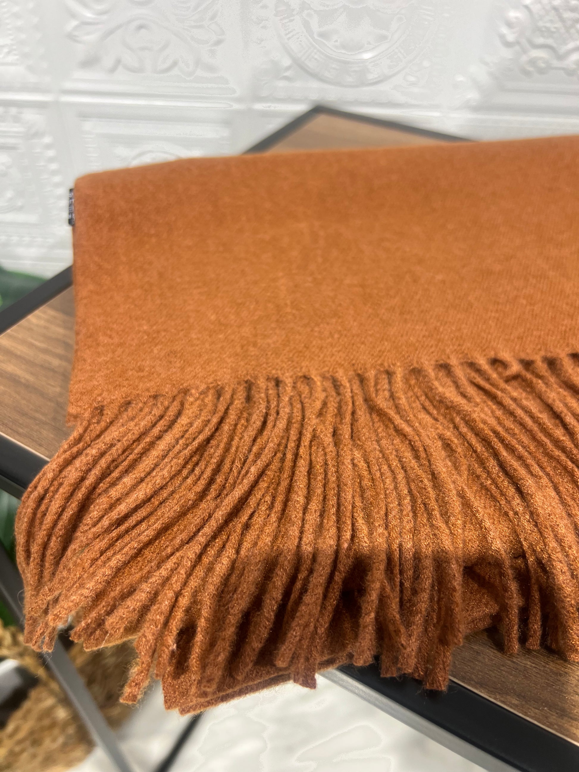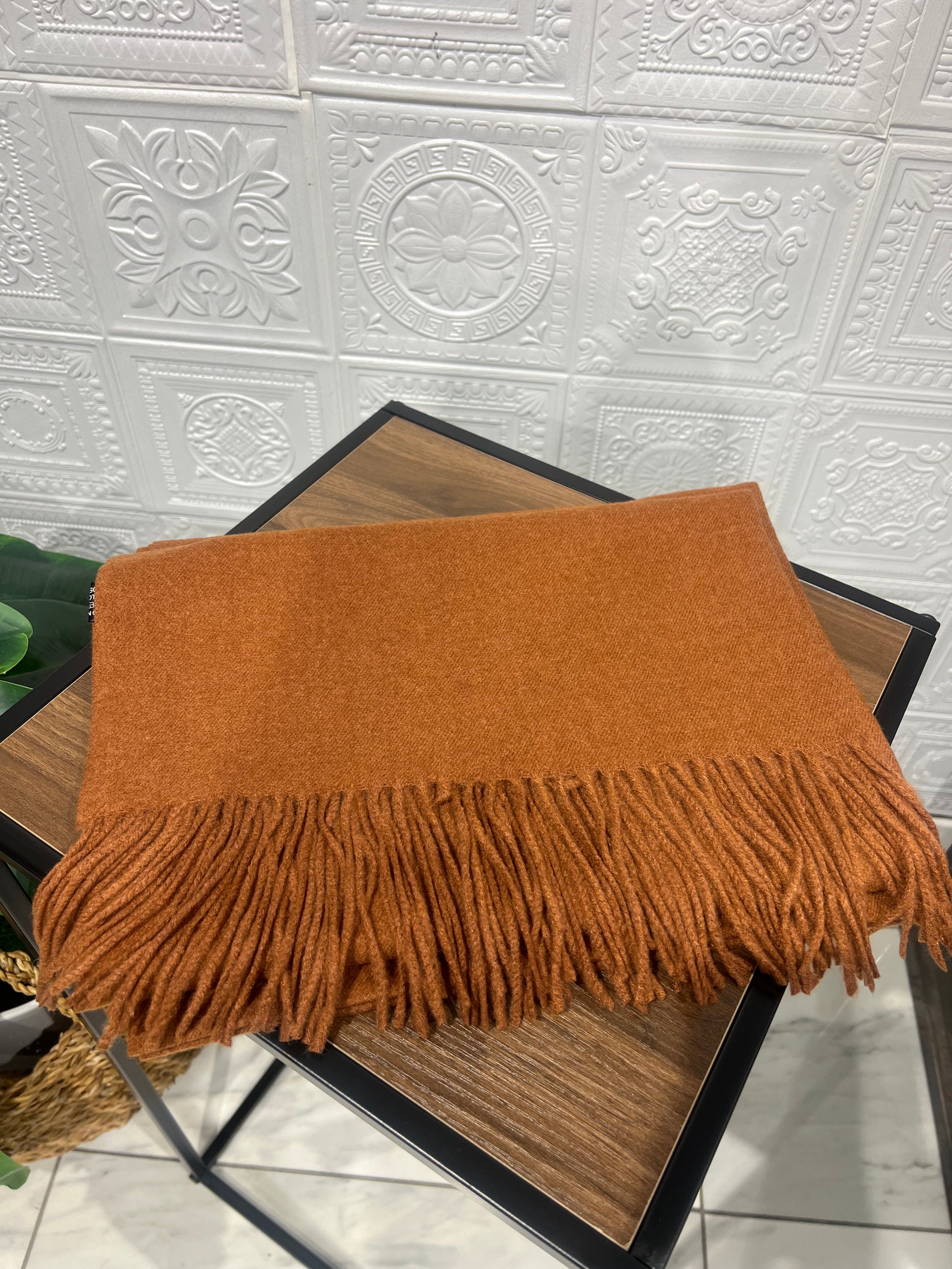 Sciarpa morbida tinta unita sfrangiata sul finale.